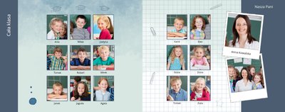 Szablon Zdjęcia szkolne idealnie sprawdzi się jako prezent na zakończenie roku dla każdego wychowawcy. Specjalne miejsce na dedykację i miejsce na podpisy całej klasy pozwolą odpowiednio spersonalizować szkolną fotoksiążkę. Kolorowe tła, tematyczne strony w postaci kartek z zeszytów, typografia dziecięca oraz polaroidy ozdabiają zdjęcia klasowe. Fotoksiążka z tym szablonem będzie świetną pamiątką dla nauczyciela Twojego dziecka.