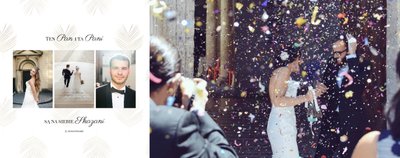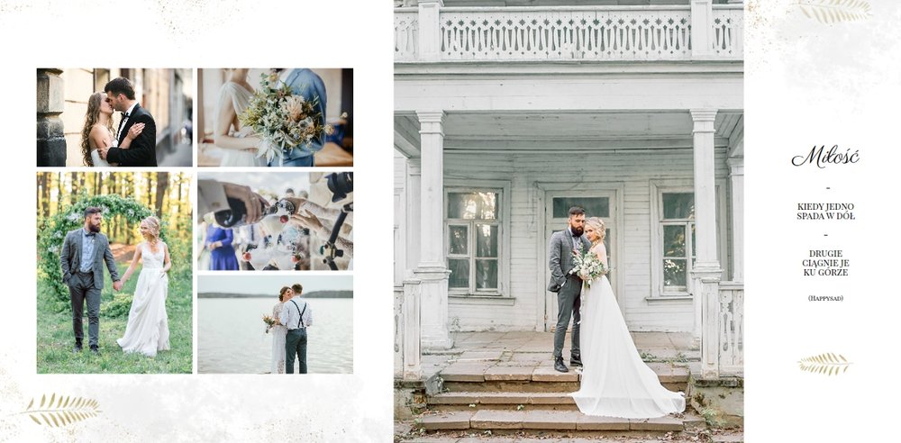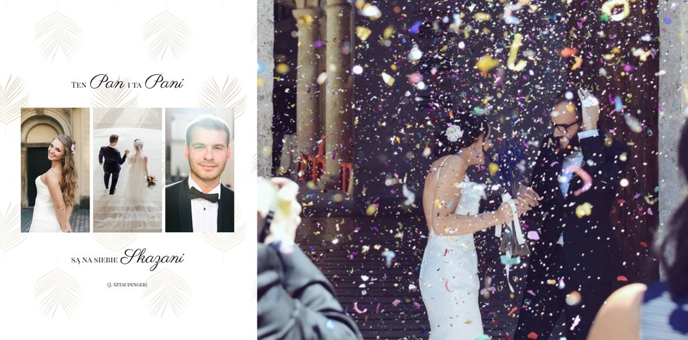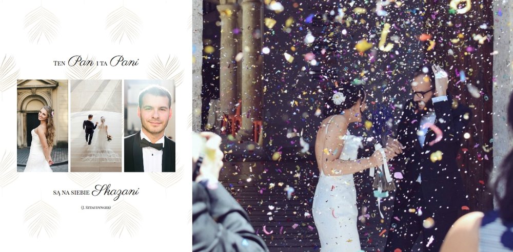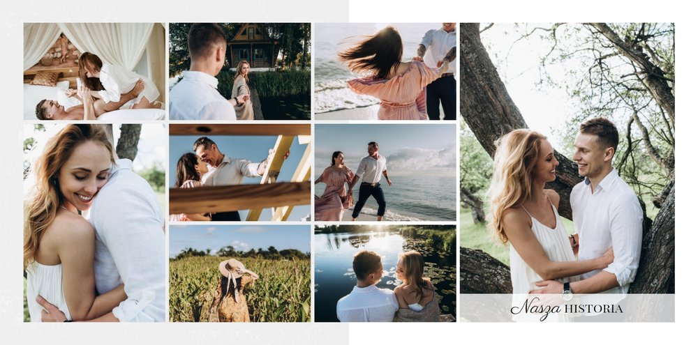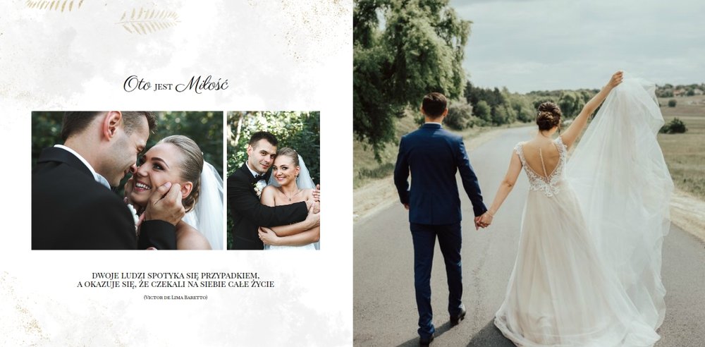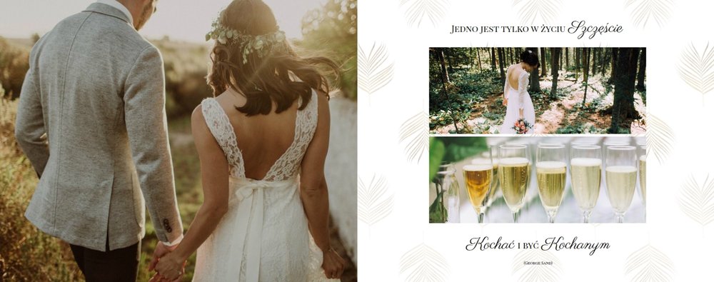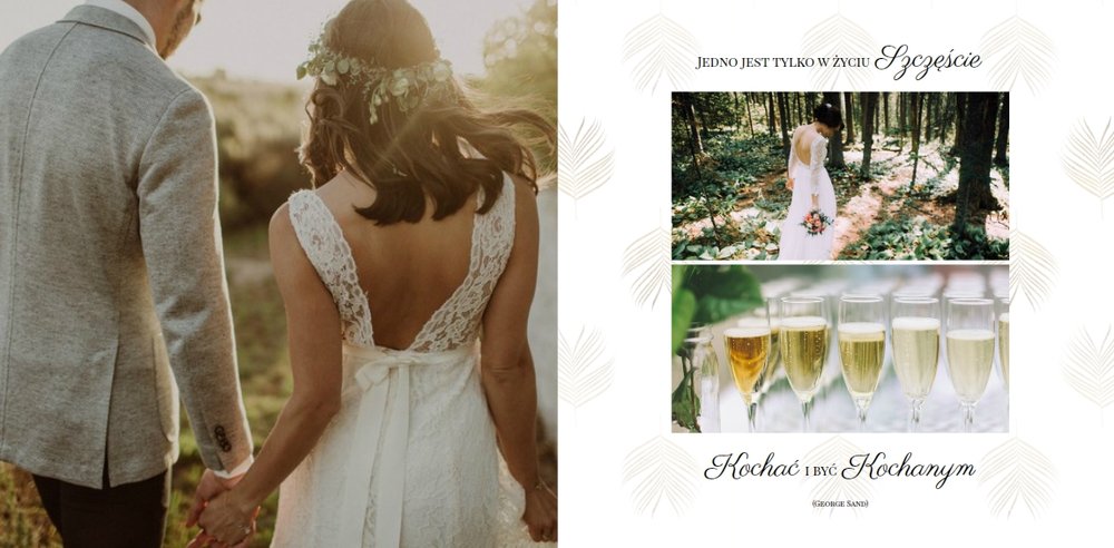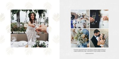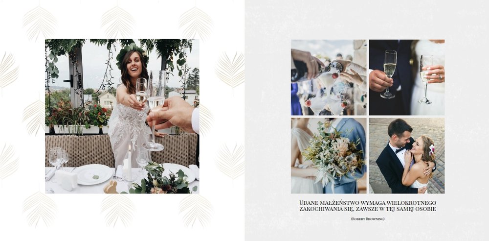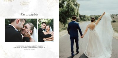 Z szablonem Zdjęcia ze ślubu stworzycie niezwykłą fotoksiążkę lub fotoalbum z wyjątkowymi wspomnienieniami weselnymi. Delikatne zdobienia, piękne sentencje i oryginalne układy zdjęć sprawią, że Wasza pamiątka ślubna będzie wywoływać wzruszenie przez wiele, wiele lat.