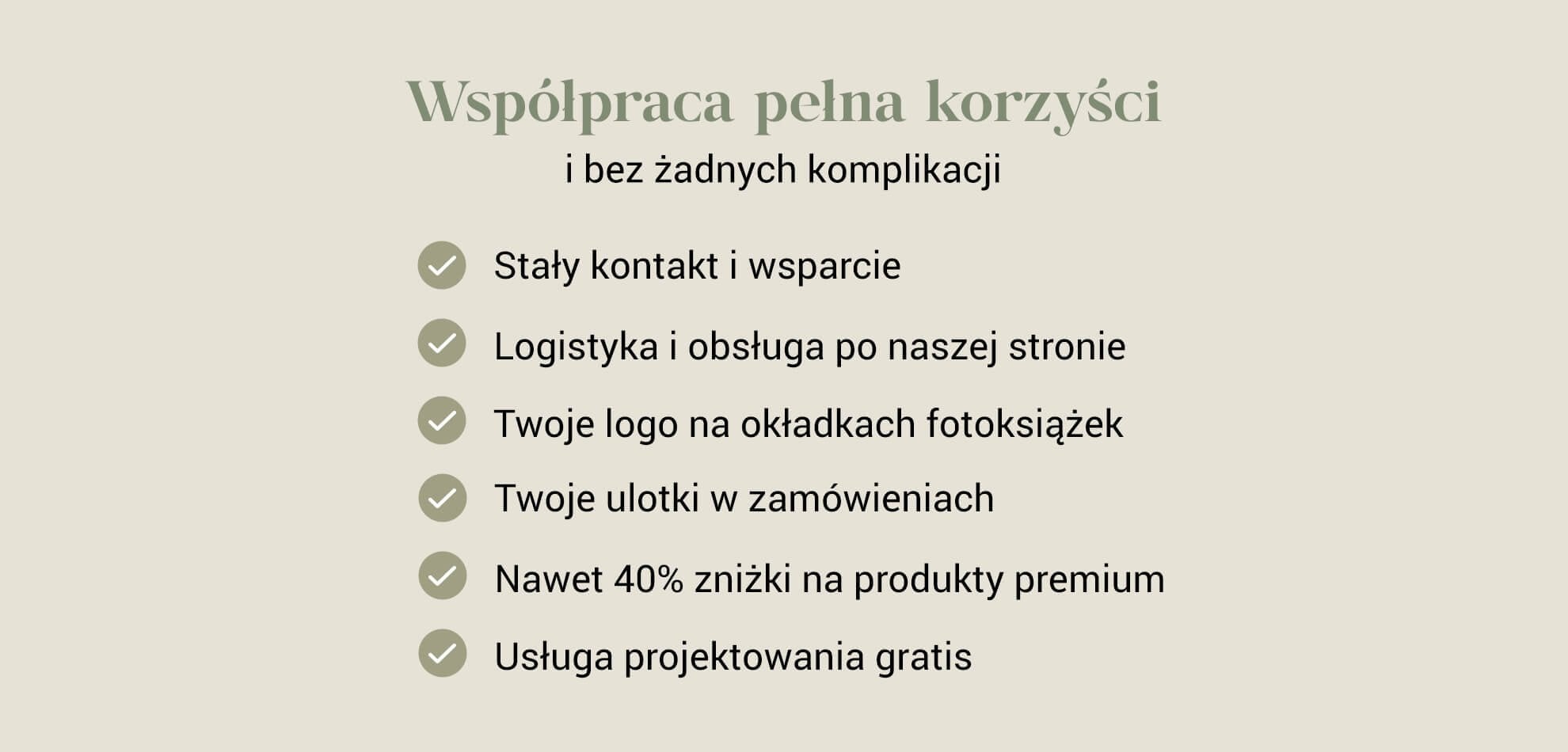 Fotoksiążka dla klientów to element, który znacząco zwiększa postrzeganą jakość Twojej usługi. Dzięki niej każde wydarzenie staje się pełnym, domkniętym doświadczeniem premium. Fotoksiążka z logo, fotoksiążka na zamówienie i druk fotoksiążek dla firm pozwalają tworzyć spójny branding i wzmacniają rozpoznawalność Twojej marki przy każdym kolejnym evencie.