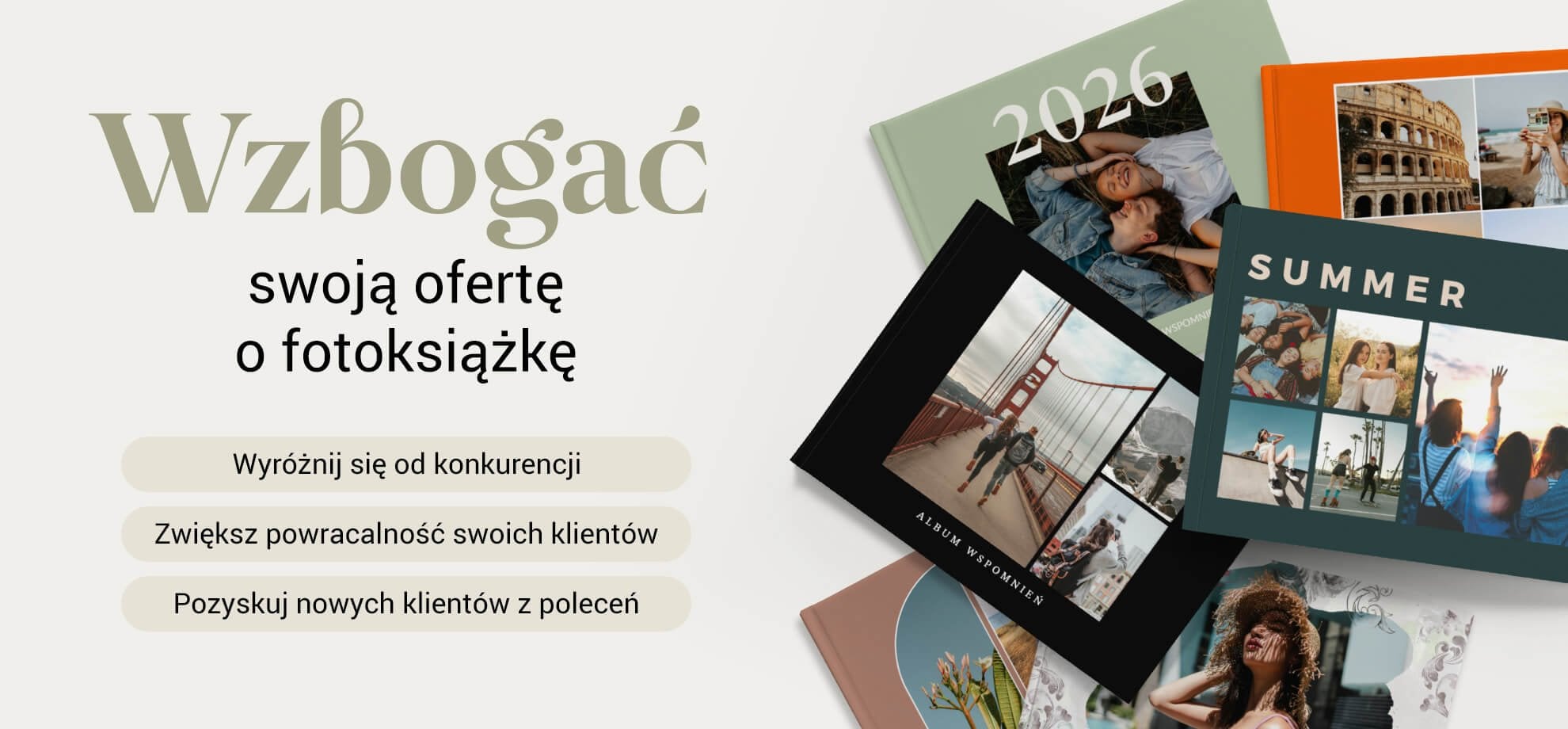 Fotoksiążki dla organizatorów eventów oraz fotoksiążki dla organizatorów wyjazdów to nie tylko dodatek, ale realne narzędzie sprzedażowe. Możesz oferować fotoksiążkę z eventu lub fotoksiążkę biznesową jako produkt premium w pakiecie lub jako osobny upsell. To prosty sposób na zwiększenie przychodów bez zmiany głównej usługi – wystarczy wdrożyć personalizowaną fotoksiążkę jako stały element oferty.