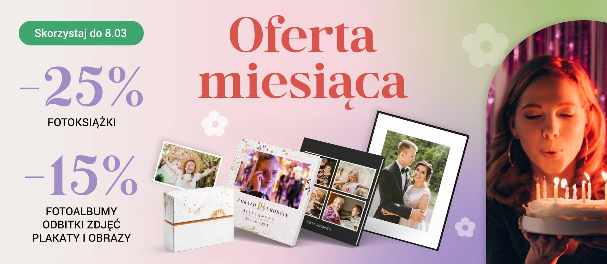 Użyj kodu MAR26 i złóż zamówienie do 08.03, a otrzymasz 25% zniżki na fotoksiążki