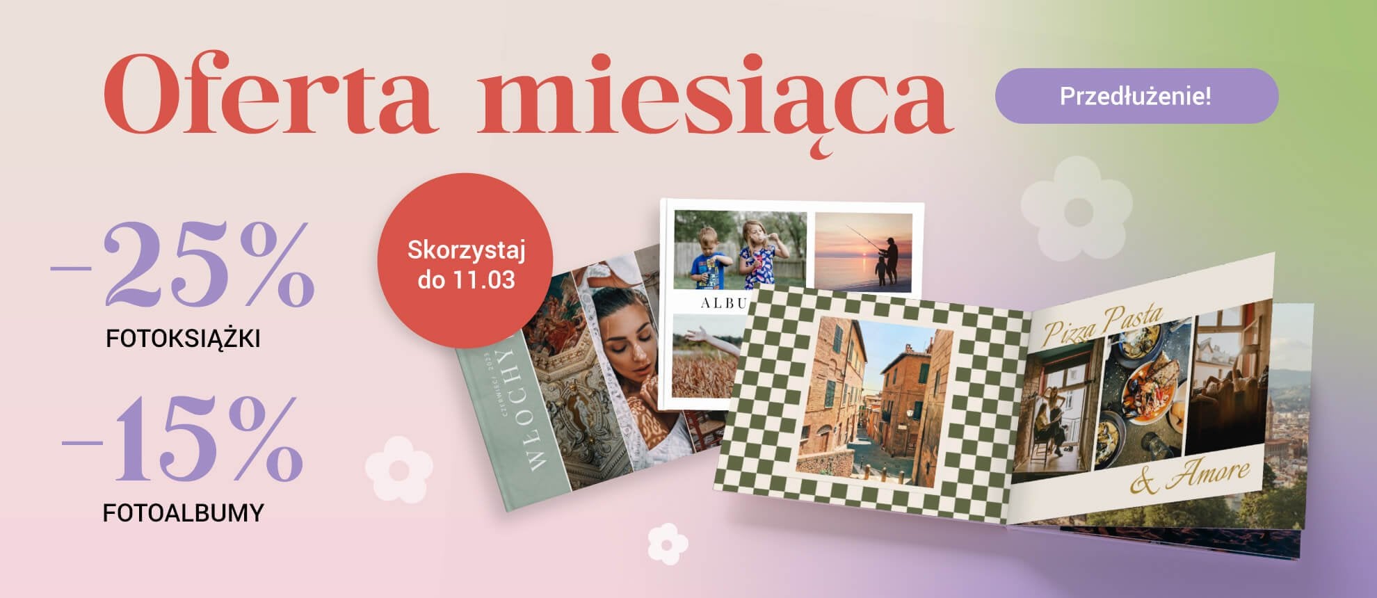 Użyj kodu MAR11 i złóż zamówienie do 11.03, a otrzymasz 25% zniżki na fotoksiążki