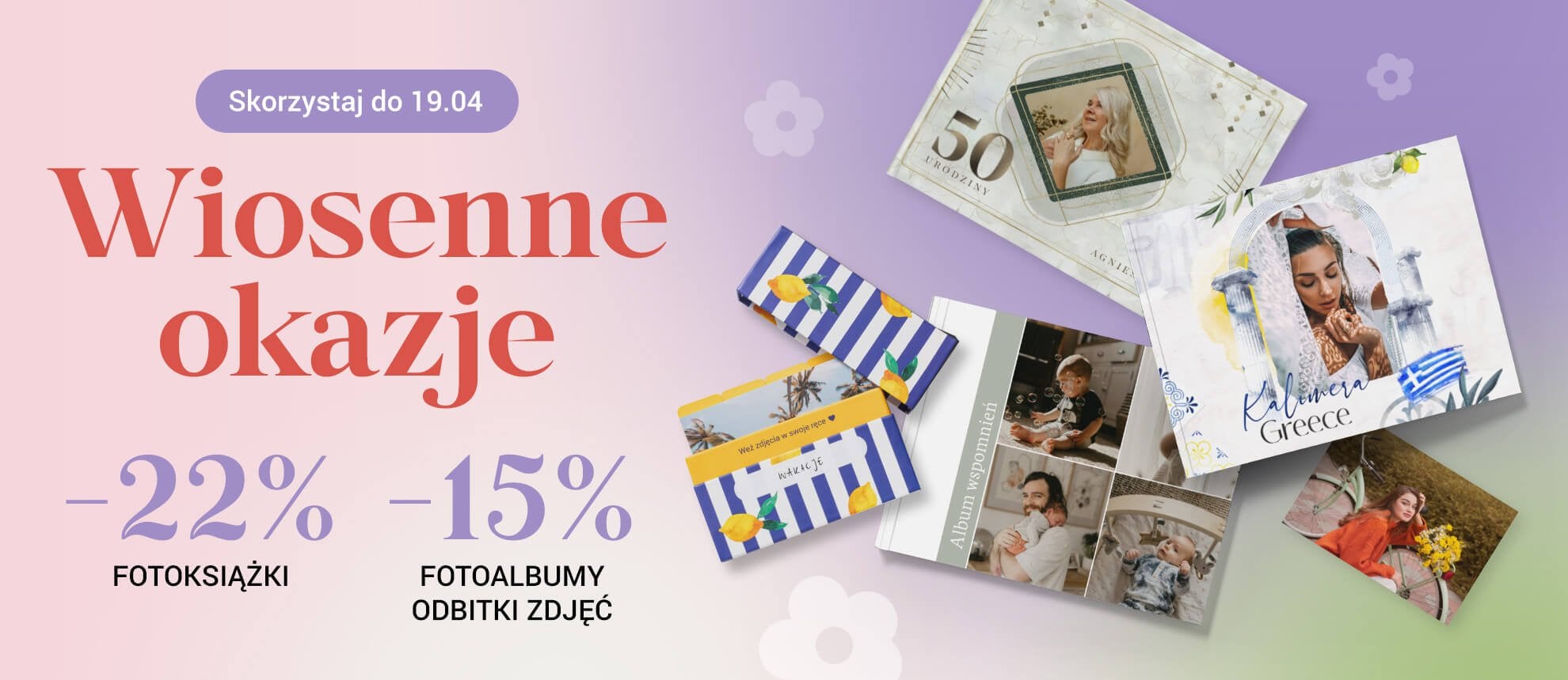 Użyj kodu KW19 i złóż zamówienie do 19.04, a otrzymasz 22% zniżki na fotoksiążki